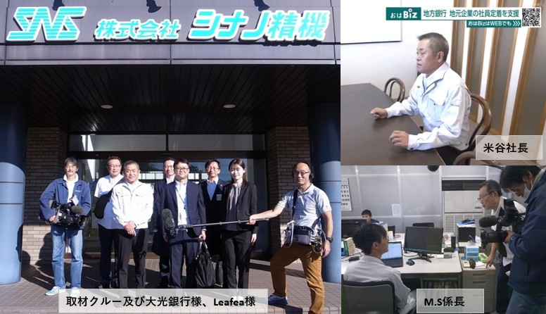 福利厚生アプリ導入について、インタビューに応える米谷社長とM.S係長。